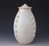 • 宋白釉弦纹带盖多角瓷壶